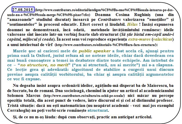 P.P.S. : Se știe că în Australia a existat (și mai există) un învățămînt la distanță (radio) pentru copiii comunităților izolate. Nota bene –acolo internetul este mult mai slab decît în România.