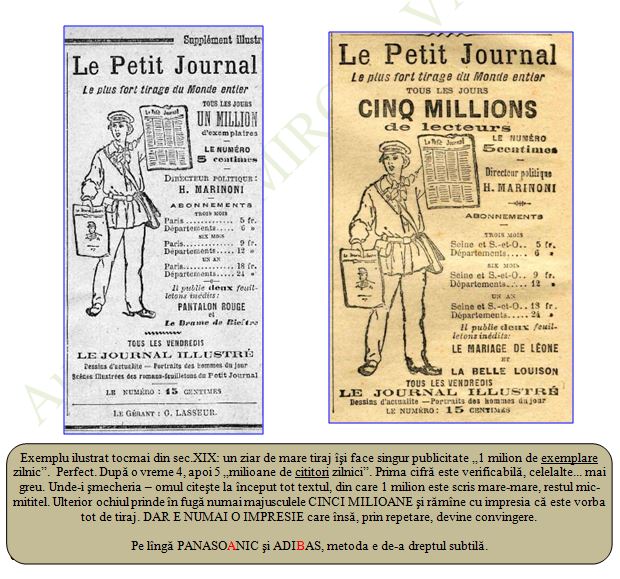 Dar cei care cumpără o pereche de încălţări ADIBAS convinşi că-s ADIDAS ? Sau vreun produs electronic PANASOANIC bucuroşi de PANASONIC-UL chilipir ? Unde pot fi încadraţi respectivii ? Aici nu mai e vorba de catastrofe şi instincte, ci doar de modesta capacitate (strict umană) de a distinge O LITERĂ. Veţi spune că avem de-a face cu un soi de analfabeţi. Chiar aşa? Trebuie să poţi citi fără bîlbîieli şapte rînduri pentru a observa un caracter în plus sau în minus ?